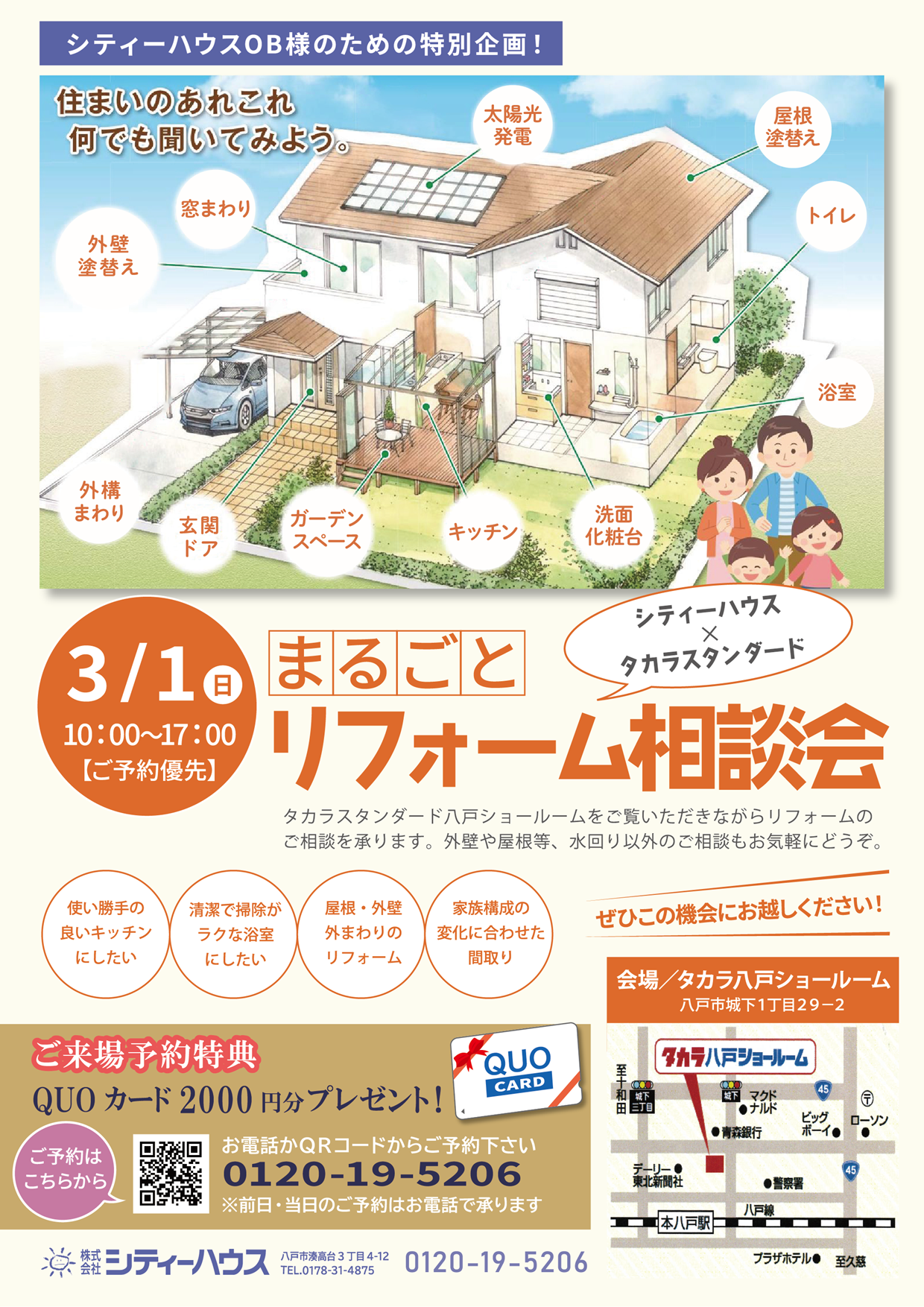 \シティーハウスOB様のための特別企画/ タカラスタンダードの八戸ショールームをご覧いただきながらリフォームのご相談を承ります。 長年住み続けた愛着のあるご自宅を、快適性と省エネ性をアッ