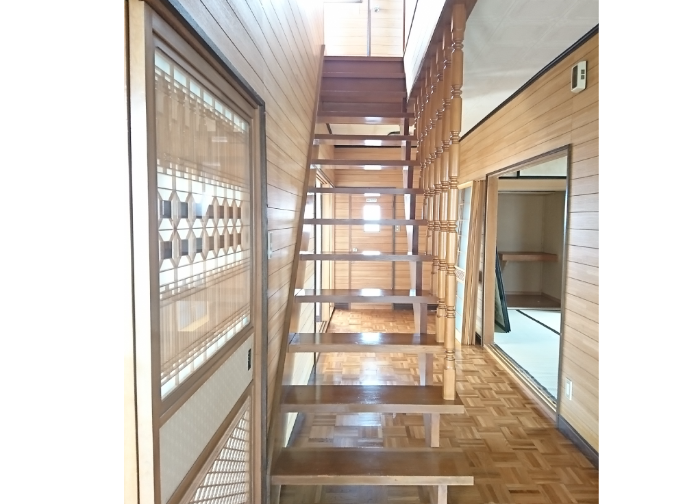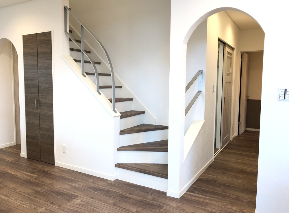 元は廊下にあった階段を、間取りを拡張してリビング階段に。 階段下を収納スペースとして有効に活用できます。