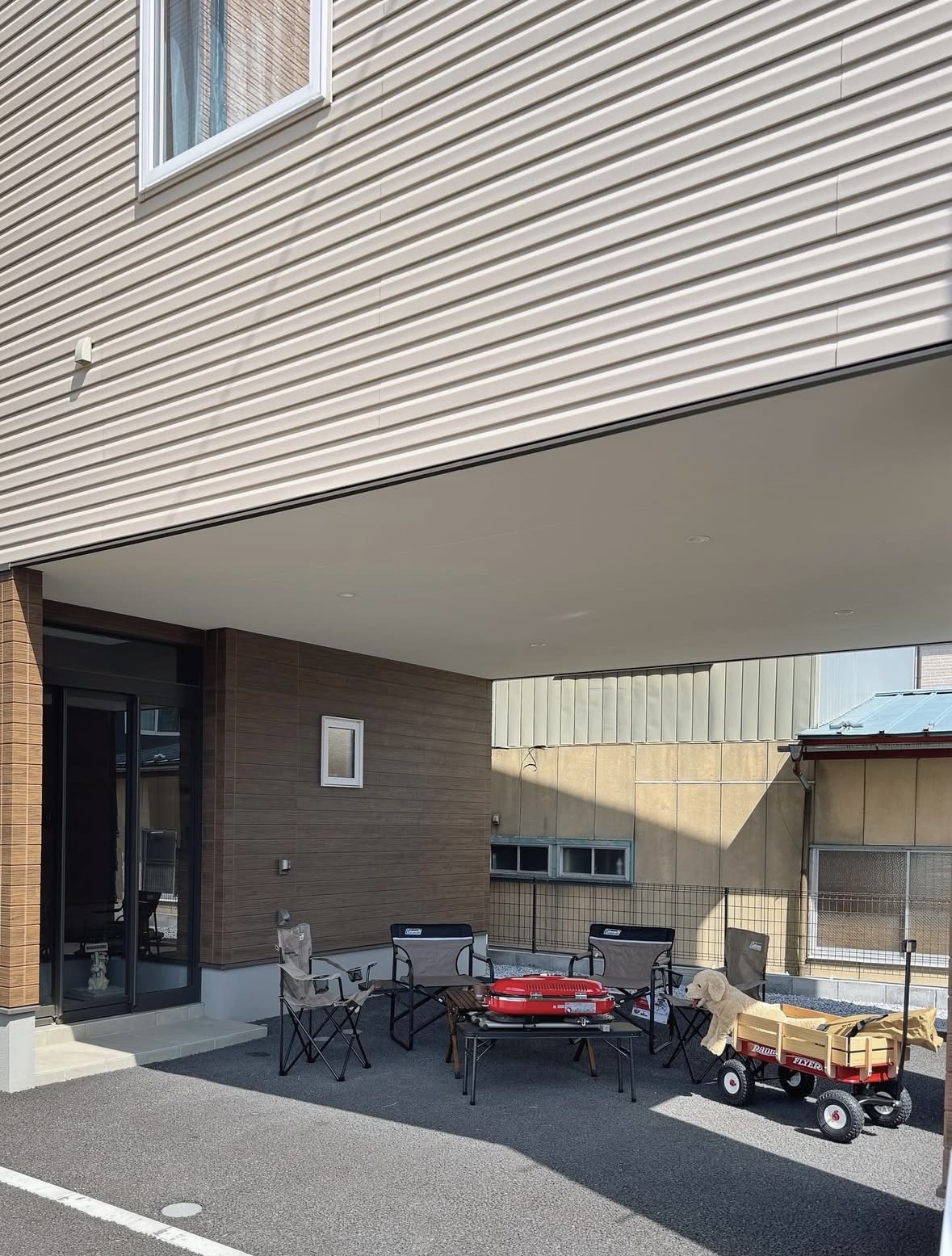 土間で趣味の道具を広げたり、グリーンのお手入れをしたりと、